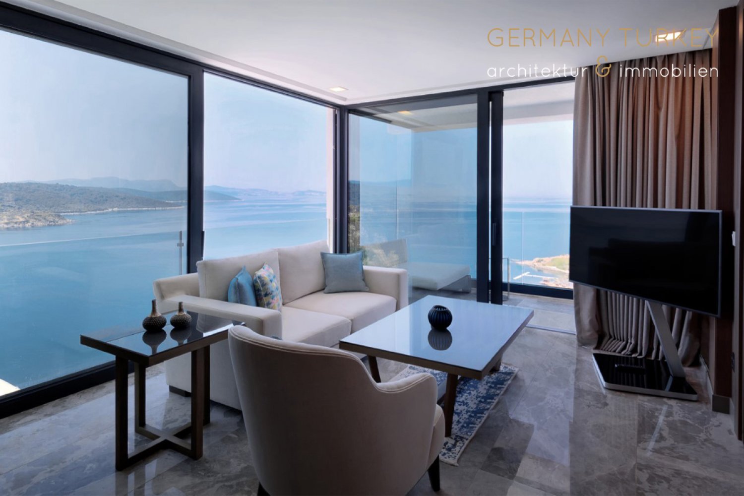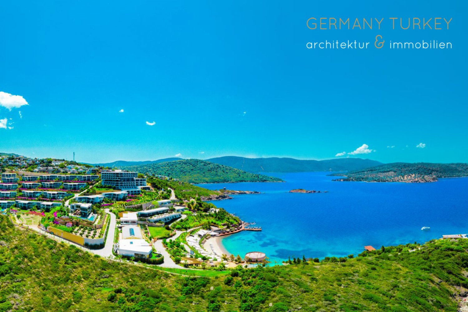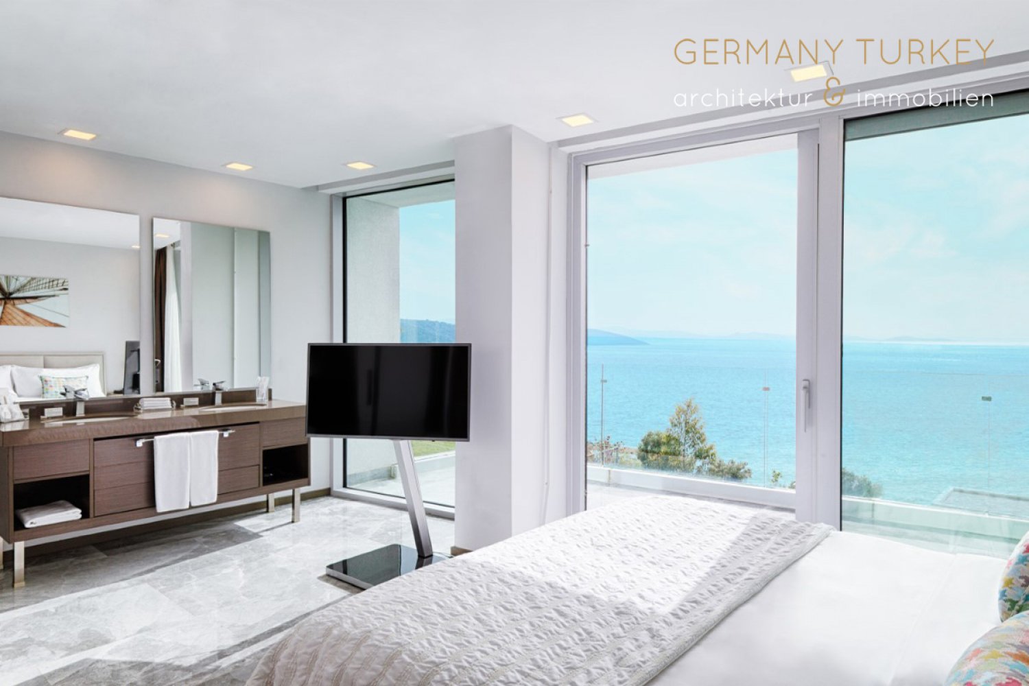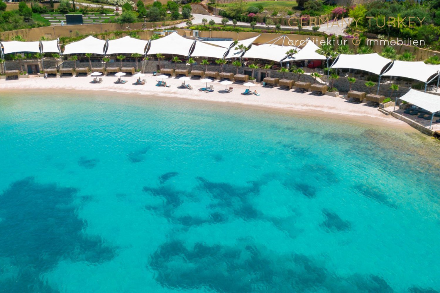 Diese Luxusresidenz ist auf der beliebt en Halbinsel von Bodrum entstanden, in der Nähe von Bogazici. Das besondere dieser Anlage ist die direkte Lage am türkisenen Mittelmeer, mit einem großen privaten Strand.