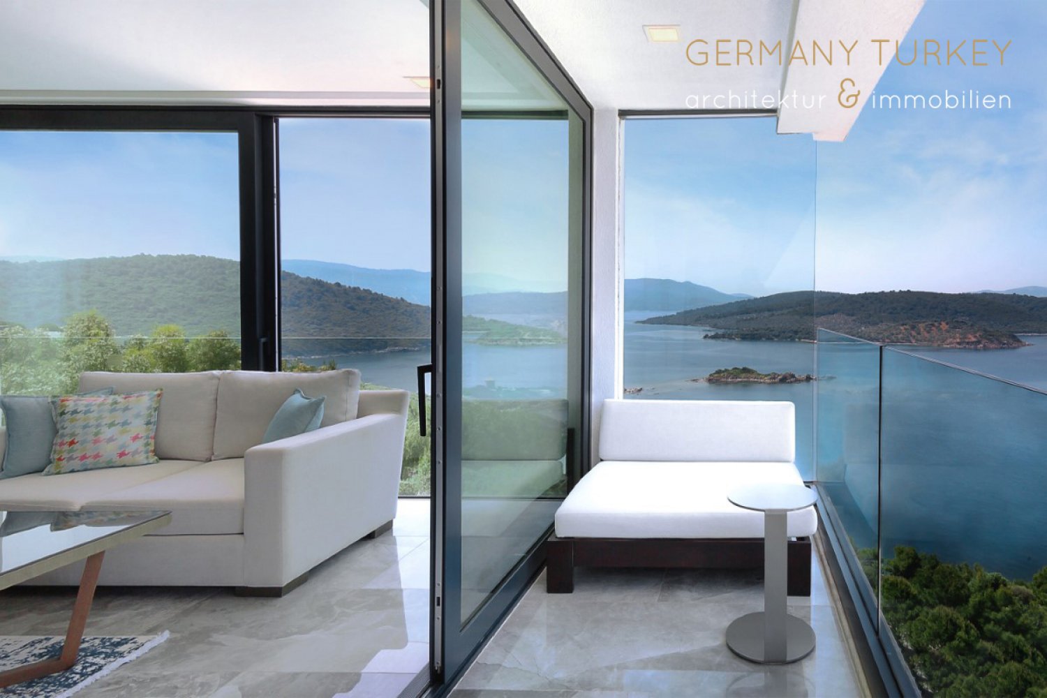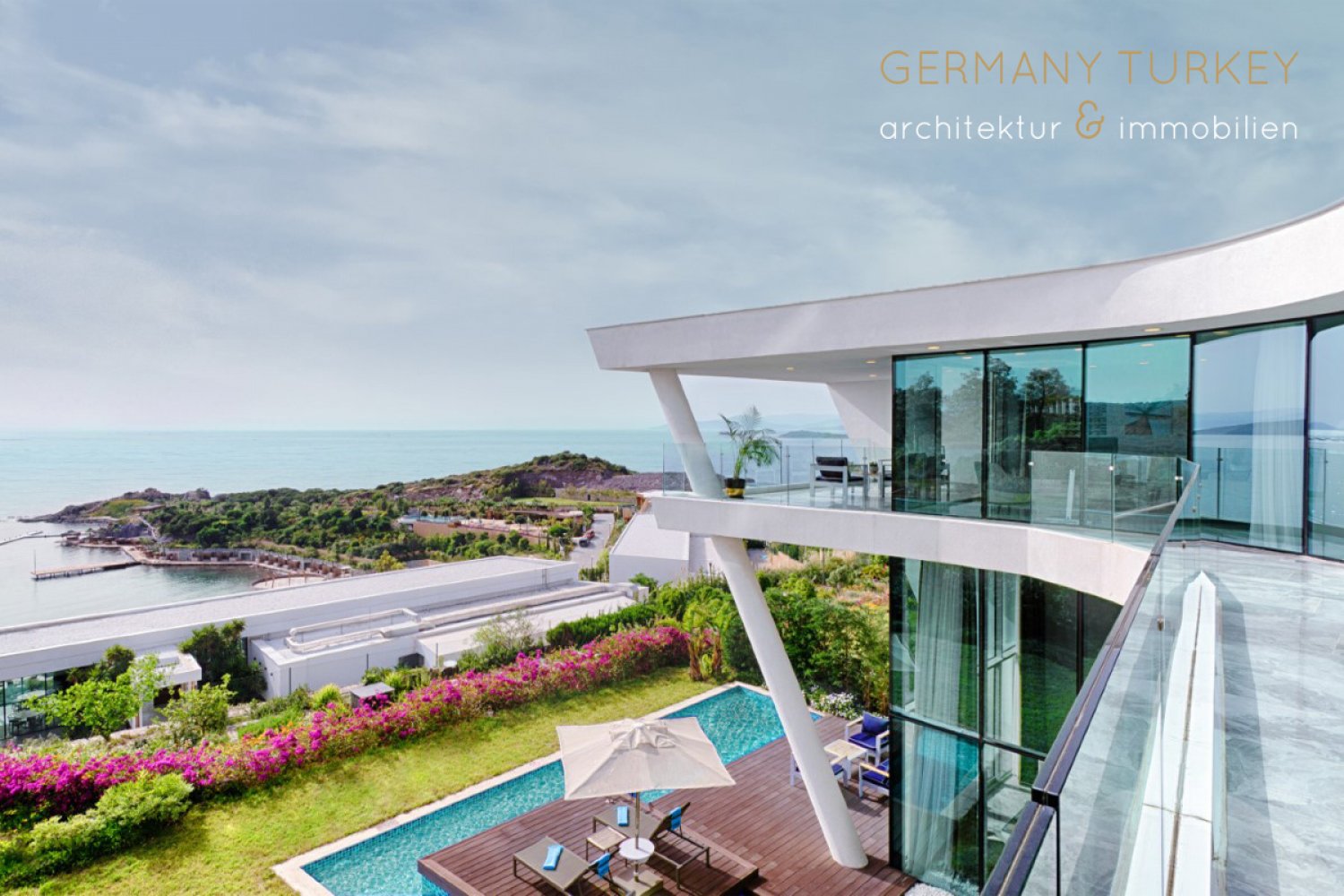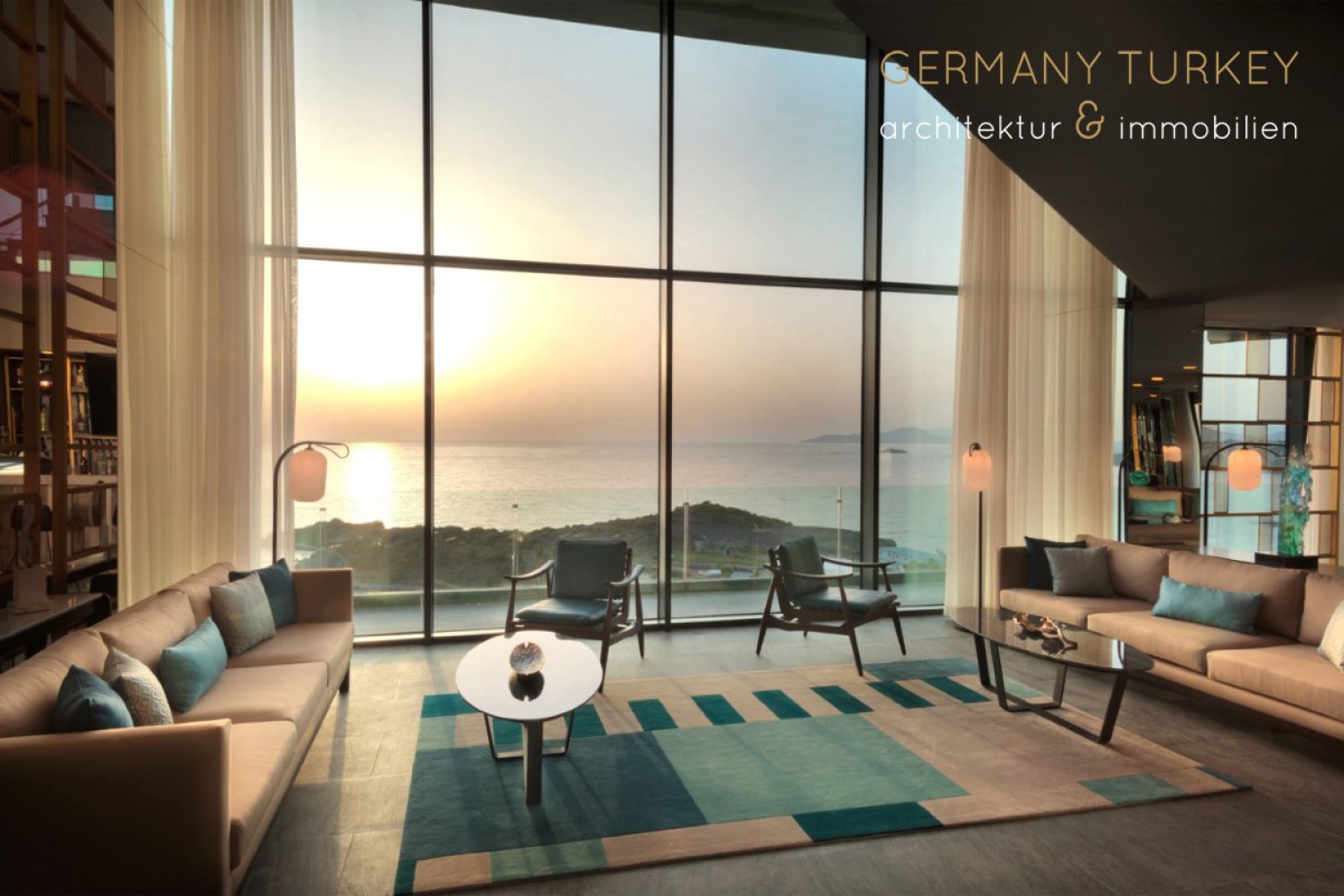 Diese Luxusresidenz ist auf der beliebt en Halbinsel von Bodrum entstanden, in der Nähe von Bogazici. Das besondere dieser Anlage ist die direkte Lage am türkisenen Mittelmeer, mit einem großen privaten Strand.