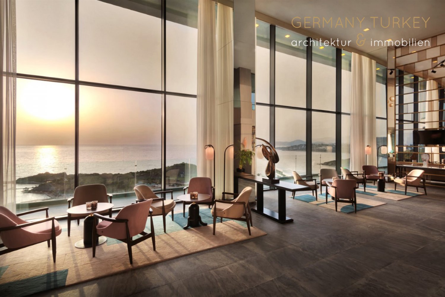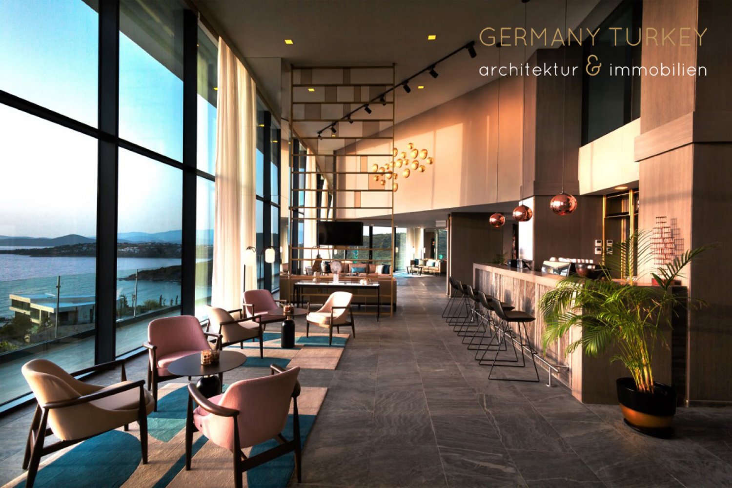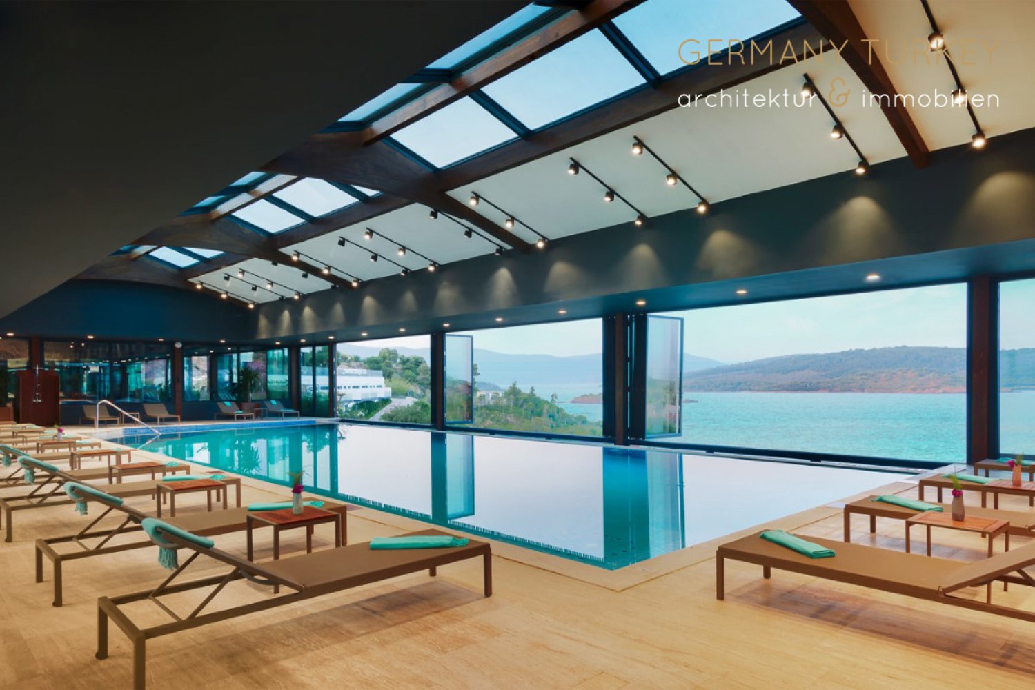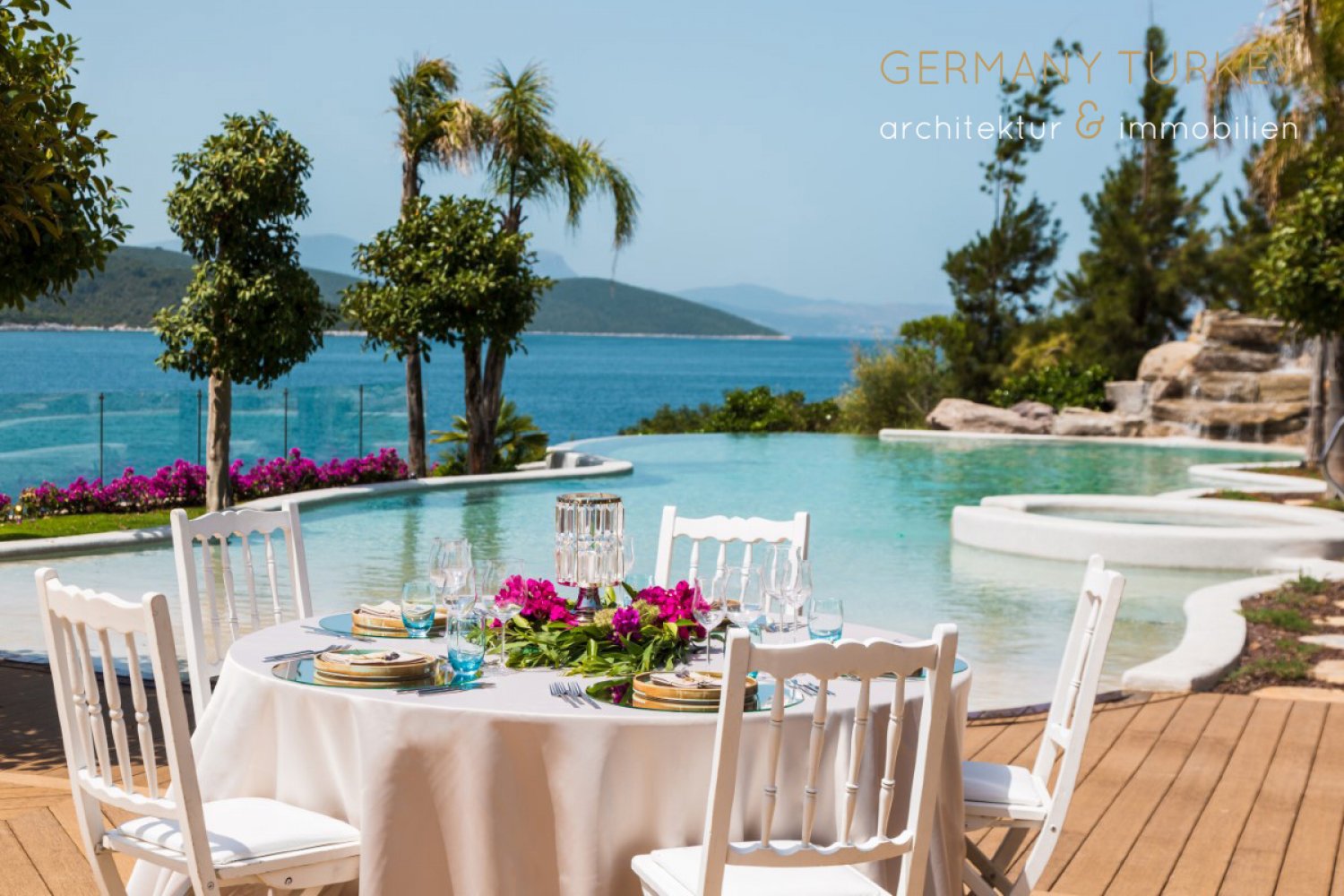 Diese Luxusresidenz ist auf der beliebt en Halbinsel von Bodrum entstanden, in der Nähe von Bogazici. Das besondere dieser Anlage ist die direkte Lage am türkisenen Mittelmeer, mit einem großen privaten Strand.